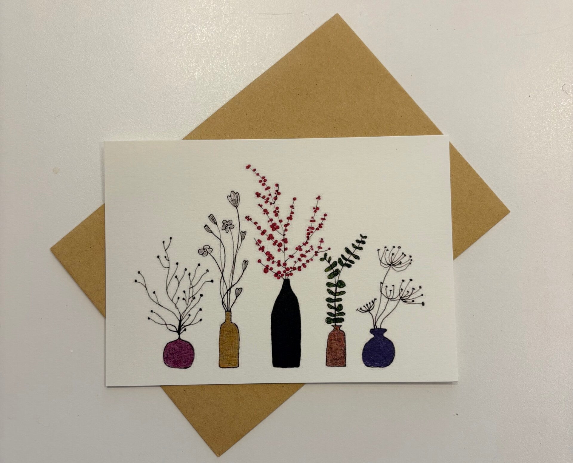 Kaartje ‘Vaasjes met bloemetjes' emma.nieke